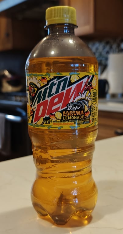 Very sweet. Fairly good artificial mango flavor explodes from the bottle when opened and is absolutely the most prominent flavor throughout. The very full fruit nearly eclipses the bright hint of lemon that arrives just before the start of the overly long classic Mountain Dew finish. Reasonably good for a short lived variant. Ok.