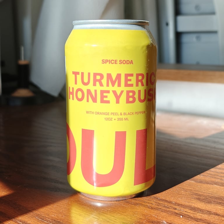Quite sweet. Starts out like a classic lemon-lime soda but changes after a beat with a very particularly lightly bitter herbal flavor that is immediately recognizable as turmeric. The lemon-lime base stays present throughout with different flavors appearing and disappearing through the middle and finish. The honeybush doesn't really come through until the finish, and more as a tone high in the mouth that works well with the fading turmeric. Not entirely sure it completely works, but definitely worth a try for those looking for something different. Ok.