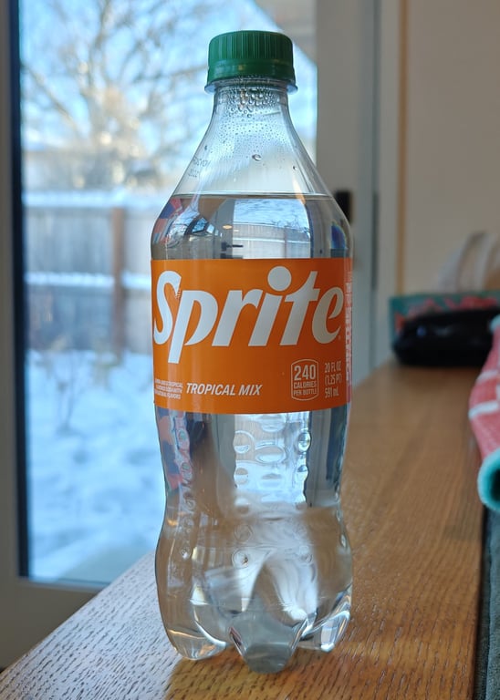Sprite Tropical Mix 2025-12-10 Very Sweet Fruit Citrus Lemon Lime Lemon-Lime Pineapple Mango Share on: Very sweet. Pineapple, mango, and lemon-lime in equal measure interleave throughout, surprisingly successfully despite their obviously artificial nature. Extremely long sprite finish. Ok.